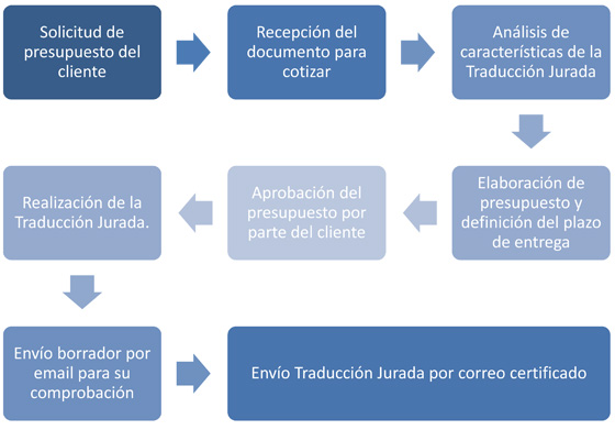 TRADUCCIONES JURADASLa interpretación jurada es una modalidad de la interpretación consecutiva. La mayor diferencia radica en que la interpretación jurada normalmente sólo se usa en juzgados, además el intérprete tiene que estar en posesión del título de intérprete jurado impartido por las autoridades del país en cuestión.Un intérprete jurado (también llamado traductor jurado) es un traductor habilitado en España para traducir de una lengua extranjera a una de las lenguas oficiales del Estado español, y viceversa. En este tipo de interpretación el intérprete jurado traduce parte por parte lo que se dice en el juzgado. Traducirá, en los descansos destinados para ello, lo que diga su cliente a la sala y lo que se diga en la sala a su cliente. La temática en este tipo de interpretación suele ser de carácter legal. Si desea recibir un presupuesto sin compromiso, por favor contacte con nosotros y comprobará que, además de ofrecer la máxima calidad, nuestros precios son también los más competitivos. ![]() |